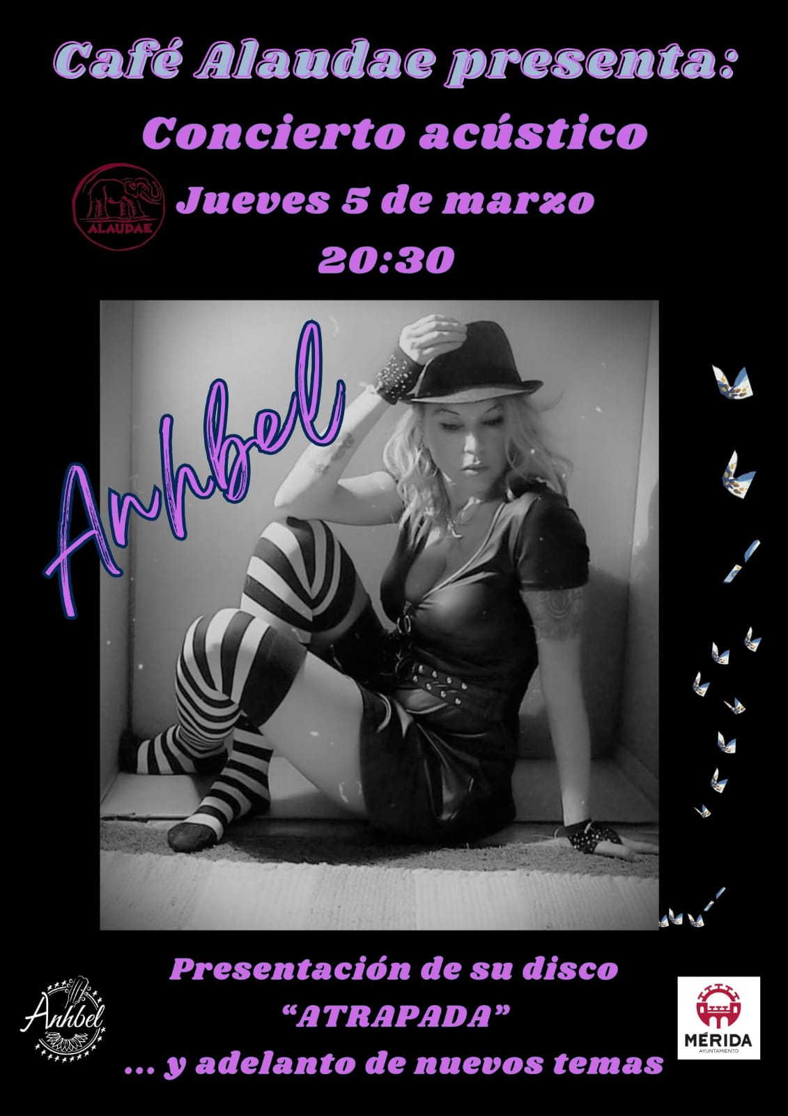 Después del primer concierto que ofrecimos en el Teatro María Luisa Mérida con Anhbel, en el festival CineBeat , nos tocó seguir en movimiento, con toda la ilusión del mundo… El pasado 24 de octubre de 2025 llenamos de música la mítica sala de conciertos, Boogaloo Café Cáceres. Presentamos el disco “Atrapada”, y también algunos singles que se lanzarán este próximo año. Fuimos con toda la banda al completo…Bandaza al completo!!
